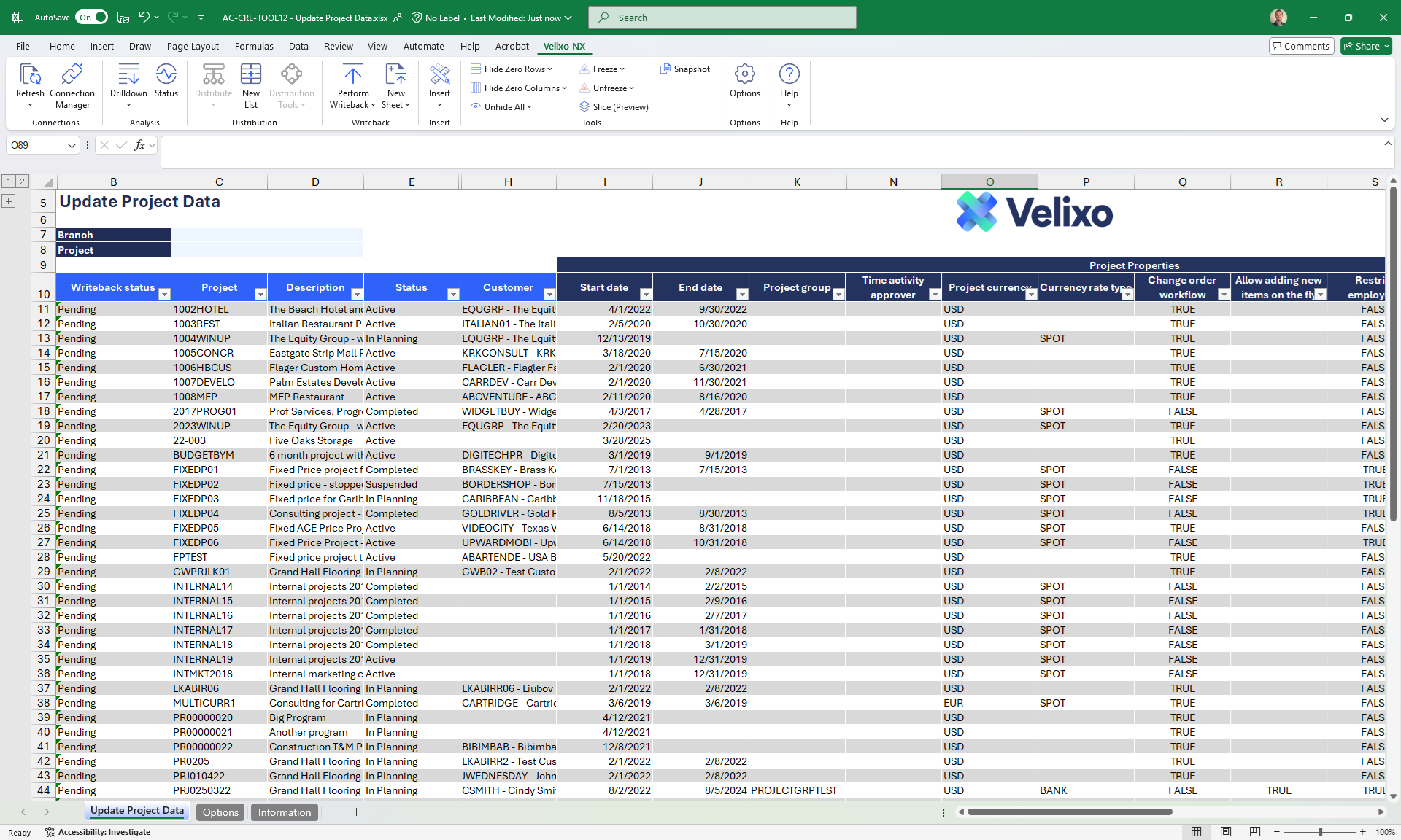 Tool Templates are typically used for data quality purposes (missing or erroneous data) and mass updating certain properties, such as Due date for AP Bills, or Status for Project. There are also many use cases for creating new records directly from Velixo in Excel.