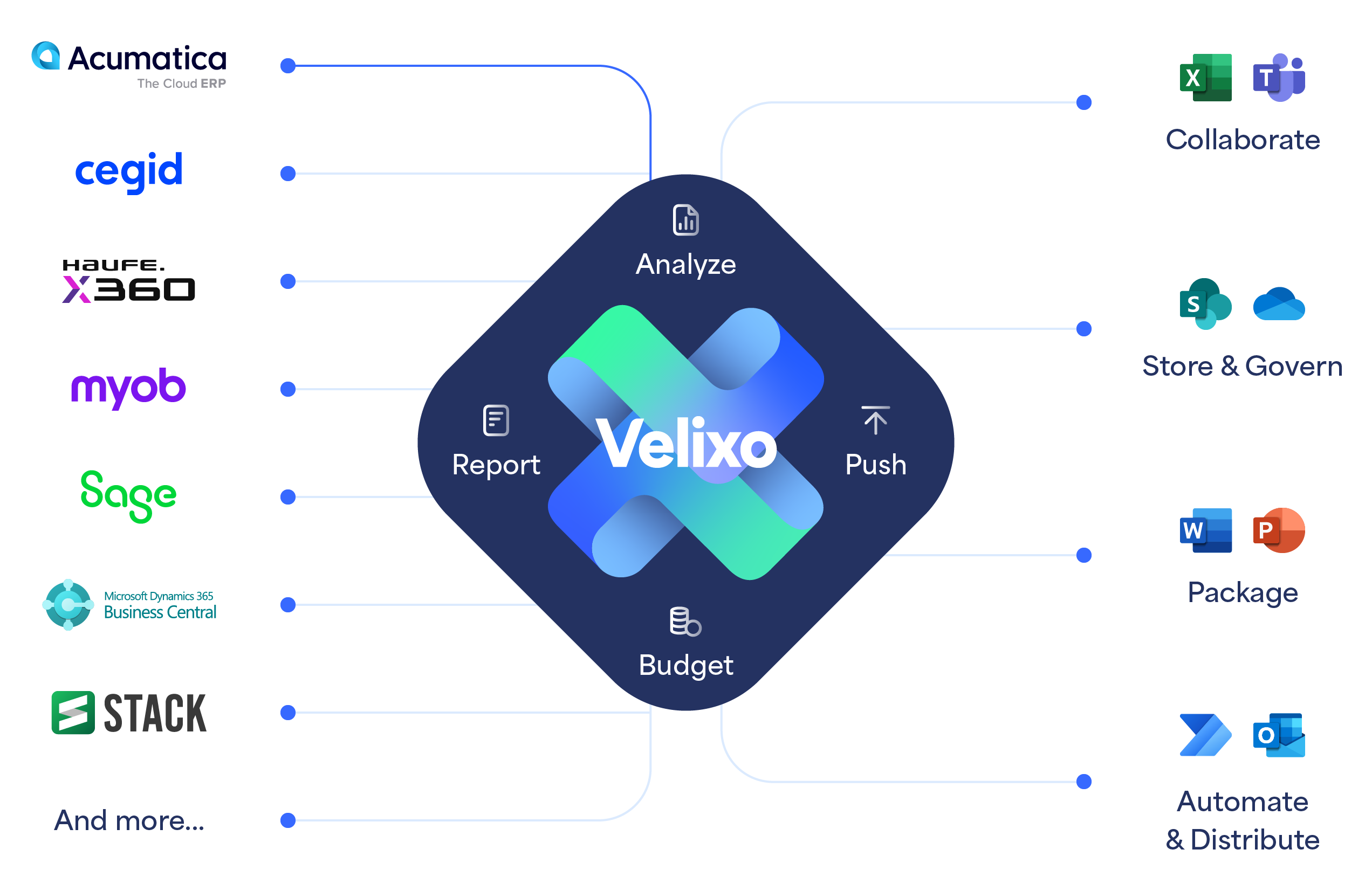Package your work, embed or distribute it using our email distribution features and native Microsoft 365 integrations. Velixo is highly integrated.