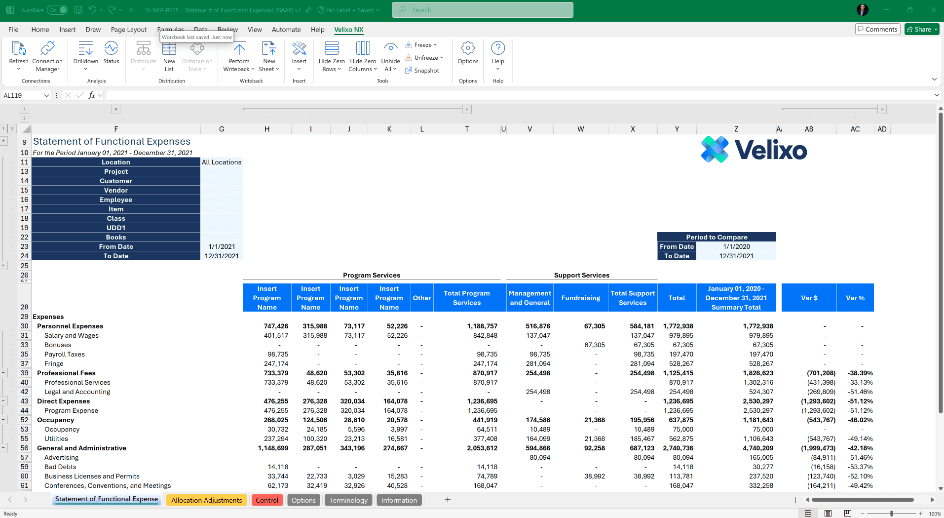From Net Asset Rollforward, to GAAP and IRS990 reporting, to purpose-restricted net assets tooling and various Grant and Actual/Budget Allocation tools by dimensions, user-defined dimensions and dates, Velixo has you covered!