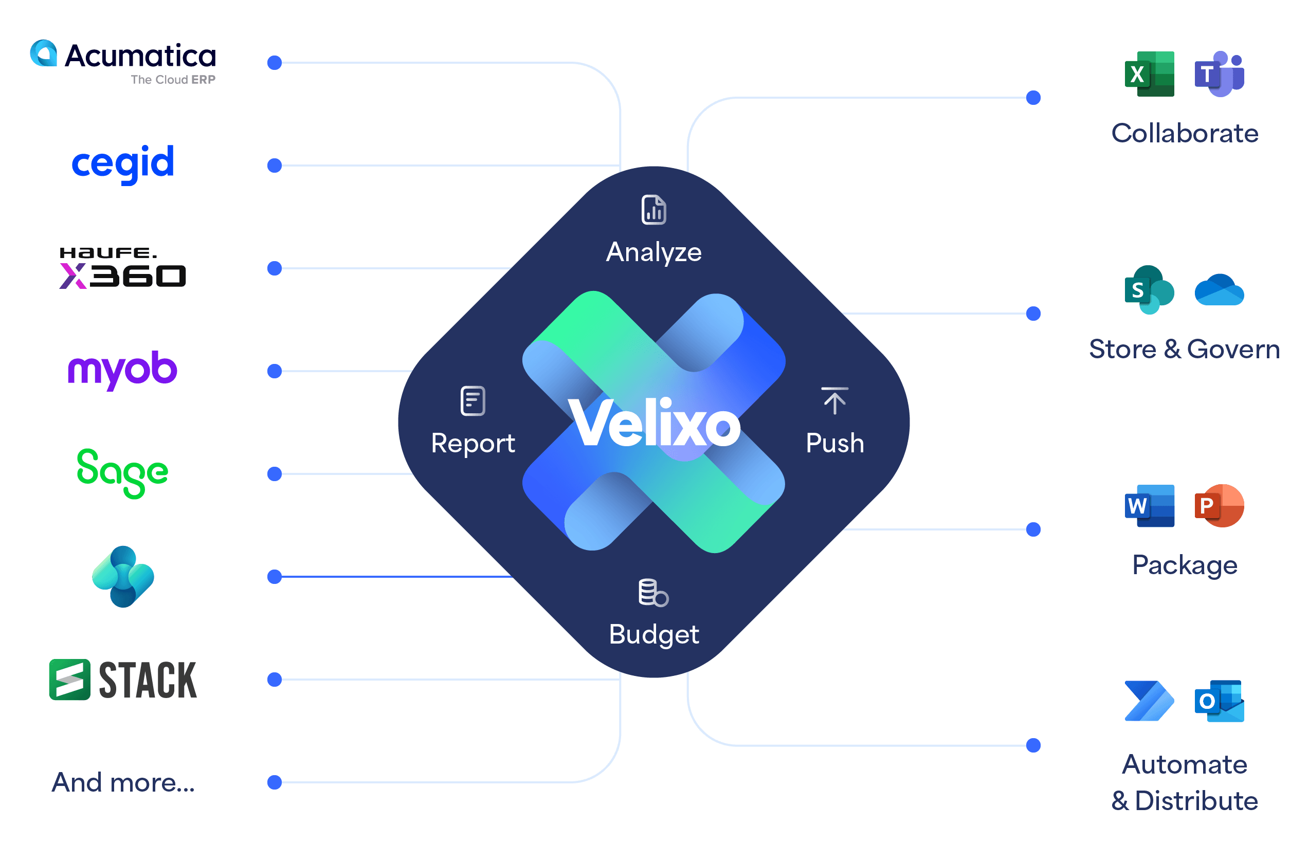 Package your work, embed or distribute it using our email distribution features and native Microsoft 365 integrations. Velixo is highly integrated.