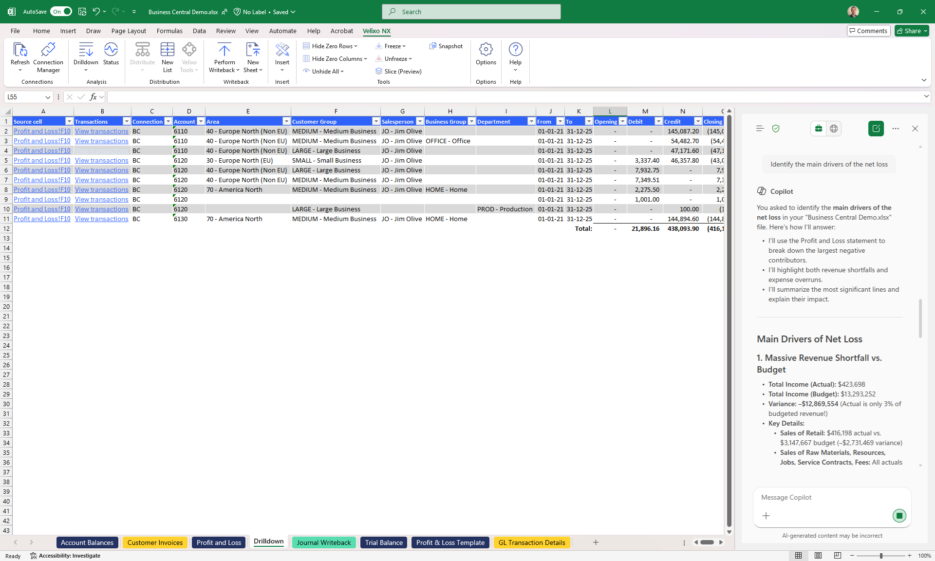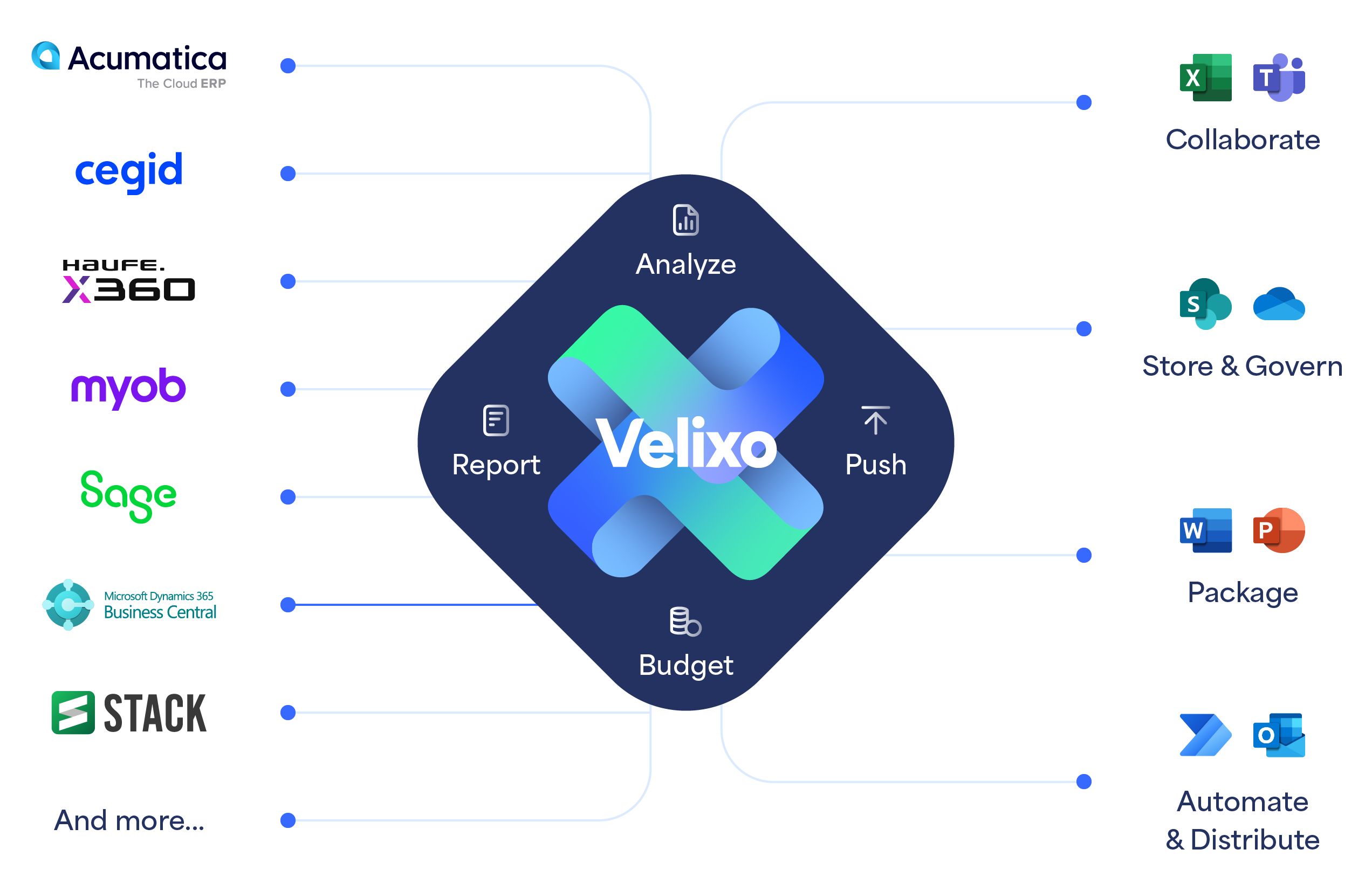 Velixo = Excel for Business Central that reads and writes: real-time, faster design with tailored financial functions, multi-company consolidation, in-Excel drilldown, and writeback built-in to create bidirectional workflows – no data warehouse, one single product, no extra servers or tools.