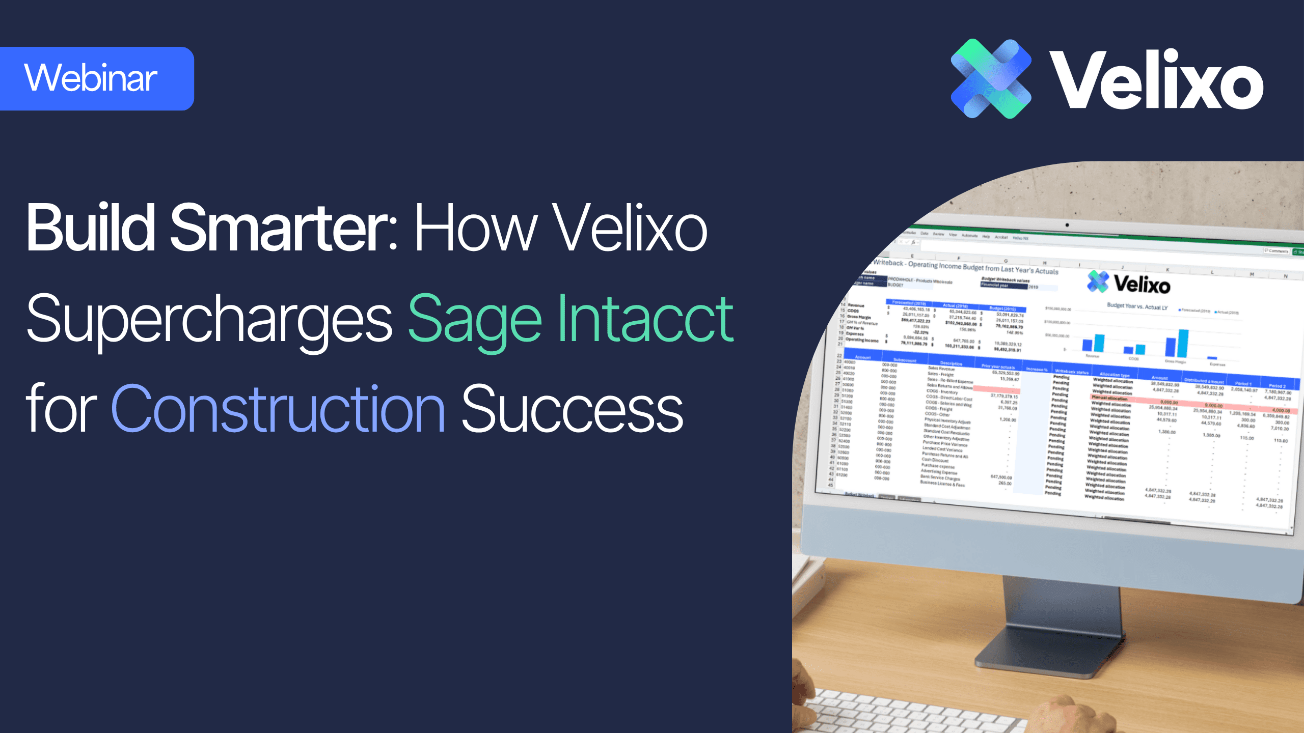 Register in the below form to watch this exclusive webinar introducing Velixo for Sage Intacct Construction. Discover how Velixo's solution, a set of features and Excel-based reports can significantly enhance your reporting and forecasting workflows and through automations will boost your productivity.